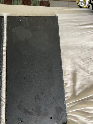 Precio negociable. Juego de platos de pizarra: - 2 grandes - 2 pequeños - 1 triangular platos usados pero en buen estado.