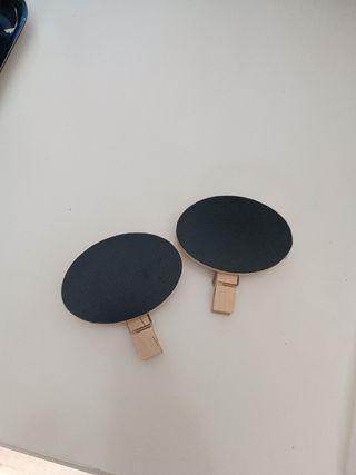 2 pequeños carteles ovalados, pintados con pintura de pizarra. tienen una pinza para sujetarlos para señalar plantas o lo que tú quieras no se ha usado nunca medidas en las fotos precio por las dos #decoración