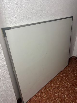 Pizarra blanca de gran tamaño, ideal para organizar tus ideas o para uso educativo. -Tiene una bandeja para dejar el borrador y los rotuladores. - No es magnética. - Marco de plástico y madera.