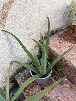 Planta de aloe vera en maceta, ideal para tu hogar o jardín. - Hojas carnosas y verdes. Como se puede ver en la imagen tiene varias en la misma maceta y ya necesita trasplantar. También regalo 3 esquejes más. Se recoge en la provincia de Toledo. Si se desea recoger en Fuenlabrada, escribir por chat.