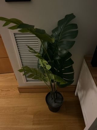 Planta artificial IKEA FEJKA – Filodendro rosa Planta artificial IKEA modelo FEJKA con hojas verdes y rosa tipo filodendro. Muy decorativa y realista, perfecta para dar un toque tropical sin mantenimiento. 🌿 Altura aprox.: 58 cm 🪴 Maceta incluida (19 cm de diámetro) ✨ No necesita agua ni cuidados 🏡 Ideal para salón, oficina, dormitorio o decoración de eventos Está en muy buen estado. 💰 Precio: 6€ (Nueva en IKEA cuesta 14,99€)