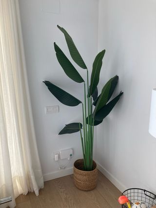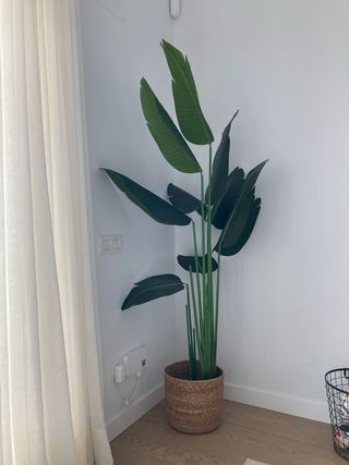 Planta artificial de interior con un diseño muy natural. Perfecta para añadir un toque de verde a cualquier rincón de tu hogar. - Hojas de plástico con acabado realista. - Maceta de mimbre tejida a mano.
