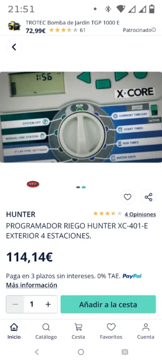 Programador riego Hunter XC-401-E 4 estaciones