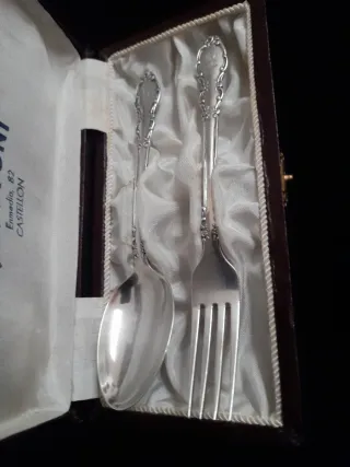Pareja de cubiertos antiguos de estilo modernista. Marcado plata de 916 milésimas. Peso aproximado de ambos : 90 gramos