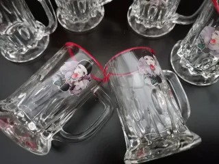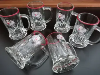 Juego 6 jarritas pequeñas antiguas de cristal. Medidas: 6,5cm.alto x 4cm.diámetro