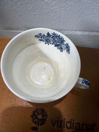6tacitas con sus platos perfectamente conservadas. Antigüedad muy bonita con remate d oro d 24k.