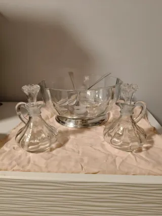 Precioso frutero de cristal y plata, ideal para decorar tu hogar. Es antiguo, tiene más de 70 años. - Diseño elegante y sofisticado. - Pieza única de cristal transparente con detalles en plata. - Perfecto estado de conservación.
