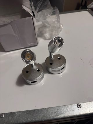 Foco de lectura plateado con base redonda. - Entrada USB integrada. - Voltaje de entrada: DC 12-24V.
