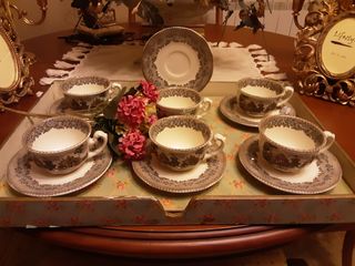 6 Tazas Consomé Cartuja de Sevilla con Plato NUEVO