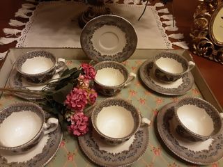 Precioso juego de seis tazas con sus platos a juego de la marca Cartuja Sevilla. - Diseño floral delicado. - Piezas de porcelana. - Ideal para coleccionistas o para dar un toque vintage a tu mesa. Sello de autenticidad Nuevo