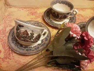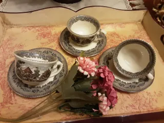 Juego 3 Tazas te Antiguas Cartuja Sevilla con Plat