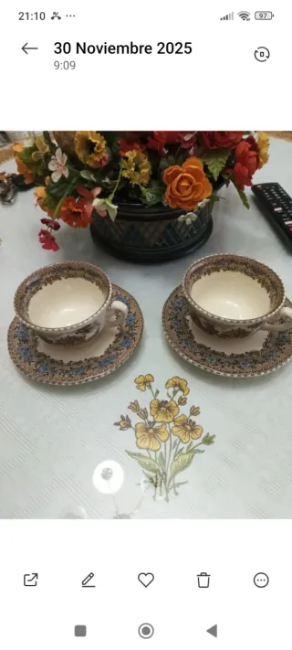 Set 2 tazas té con plato Cartuja Sevilla Antiguo