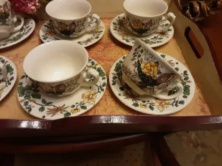 Conjunto de cuatro tazas con sus respectivos platos de la reconocida marca Cartuja Sevilla. Cada pieza presenta un diseño clásico y elegante. Sello muy antiguo y numerado Una auténtica joya para coleccionistas - Incluye 4 tazas. - Incluye 4 platos. - Diseño distintivo de Cartuja Sevilla.