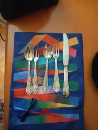 Set de cubiertos de metal plateado