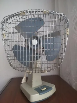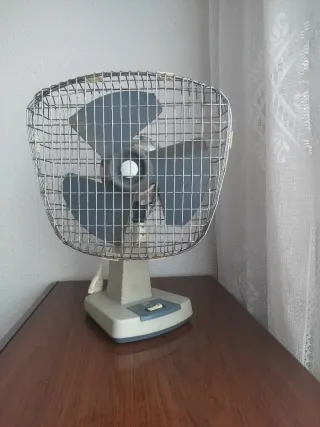 Ventilador de sobremesa de la marca Taurus. - Rejilla protectora de metal. - Base de plástico. - Interruptor de encendido/apagado.