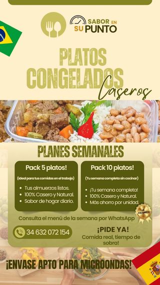 🍱 ¡Comida casera congelada, rica y lista en minutos! ¿Cansado/a de cocinar todos los días? 😩 Yo tengo la solución 💛 Platos caseros, sabrosos y listos para que solo calientes y disfrutes. ✨ Ahorra tiempo ✨ Come bien todos los días ✨ Sabor como hecho en casa 💰 7€ menú tradicional | 8,50€ premium 📦 Pack 5: 32€ | Pack 10: 60€ 🔥 ⚠️ Producción limitada esta semana +34 632 072 154 📩 ¡Mándame un mensaje privado y reserva el tuyo antes de que se acaben!