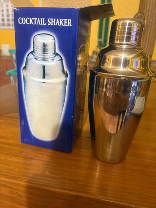 Coctelera de metal con un acabado brillante, perfecta para preparar tus bebidas favoritas. - Diseño clásico y elegante. - Marca Cafes Bou. - Precio indovidual, hay varias cajas, varias cocteleras.