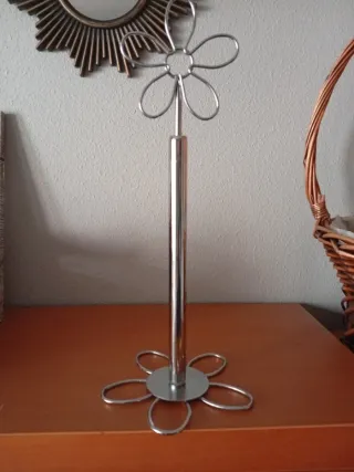 Portarrollos de papel de cocina con un diseño original en forma de flor. - Base y parte superior en forma de flor. - Soporte central metálico. - Acabado plateado.