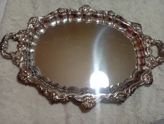 Set de bandejas de metal plateado, ideales para servir en eventos o catering. - Diseño ovalado. - Borde elevado. Precio por bandeja 7€ Tengo 5 PREFERIBLE ENTREGA EN MANO