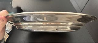 Plato de Alpaca Plateada ideal para la decoración y a su vez muy útil. Diámetro 25cm. Tiene la marca de Alpaca e iniciales grabadas.