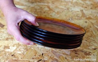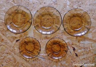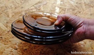 Conjunto de platos Duralex en color ahumado. Lote de Platos duralex ahumados: -3 platos de 16 cm -2 platos de 12,5 cm