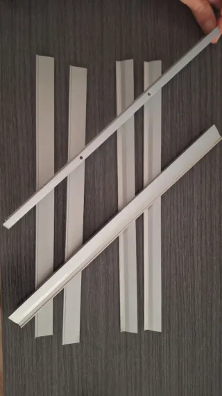 Conjunto de tiradores para muebles con un acabado elegante. - Diseño moderno. - Ideal para dar un toque distintivo a tus armarios o cajones. Incluye los tornillos. Largo 30cm Ancho 2 cm