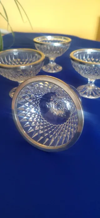 Copas vintage cristal de postre con borde plateado