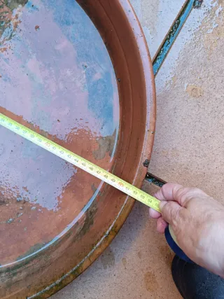Plato hondo de la reconocida marca La Cartuja, modelo Vistas. Años 1900-1960. Cómo se aprecia tiene un desconchado en la esquina inferior izquierda. Tiene también su agarres traseros para colgar lo de la pared si se desea el cual viene incluido. Tengo más piezas de la Cartuja en el perfil llévate varias y recibe descuento