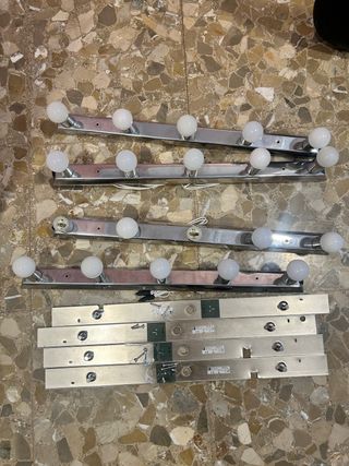 Conjunto de apliques de iluminación con un diseño moderno y elegante. - Estructura metálica plateada. - Bombillas de vidrio blanco. Esta en perfecto estado y tiene todas las piezas , solo faltan 2 bombillas que estan fundidas las demas estan cambiadas (hay 4 apliques)
