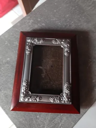 Elegante marco de fotos con un diseño clásico, Pre-marco interior plateado con detalles decorativos,sin roturas ni manchas mide 18x14 centímetros y 240 gr. Hago envíos Ordinario:3'80€ Certificado:8'5€ o wallapop envíos