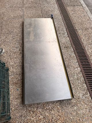 Encimera de acero inoxidable, ideal para cocinas de bar o restaurantes. - Material resistente y duradero. - Acabado plateado pulido.