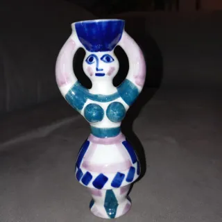 Figura decorativa - Pieza de Sargadelos. - Tonos azules y rosas.
