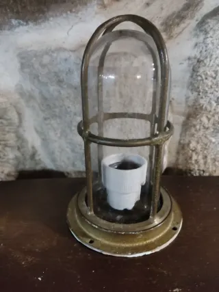 Lámpara de estilo náutico con base y estructura metálica y tulipa de cristal. - Diseño robusto y clásico. - Ideal para ambientes marinos o industriales.