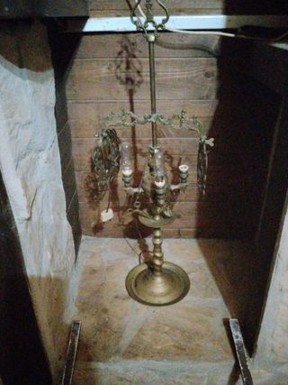 Elegante lámpara de mesa con un diseño clásico y detalles ornamentales. - Base y estructura de metal. - Acabado en tonos dorados y marrones. - Altura ajustable.