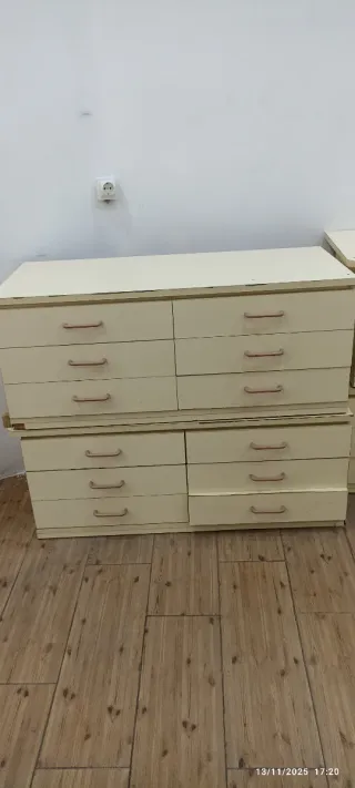 Mesita de noche moderna y funcional. - Diseño limpio y minimalista. - Cajones con guías integradas. - Acabado liso y fácil de limpiar. - Tableros de partículas. Dispongo de 2 unidades (Precio por unidad)