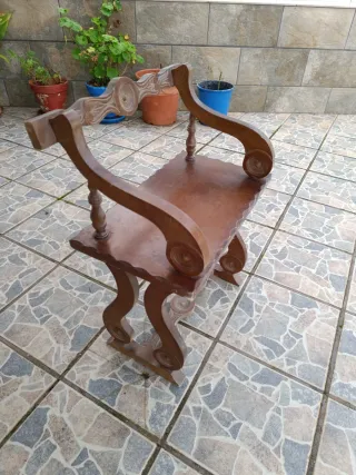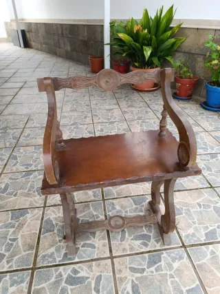 Bonita silla de madera con detalles tallados. - Diseño clásico y elegante. - Asiento cómodo. - Patas estables.