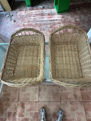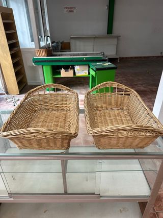 Canasta de mimbre con un diseño rústico, ideal para exhibir productos de panadería o alimentos. - Elaborada con tejido de mimbre. - Tonos naturales en beige y marrón. * 10€ unidad si te llevas las 3, las dejo a 20€