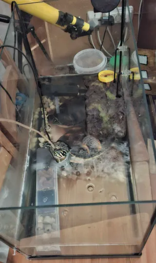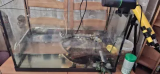 Pecera tortuguera de cristal y plástico