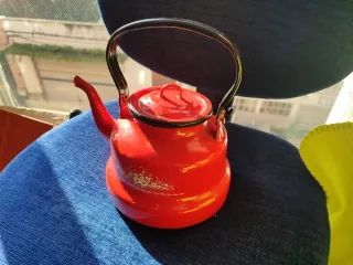 Tetera vintage de metal roja