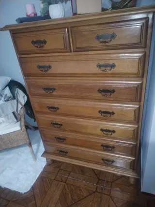 Mueble sinfonier de madera con un diseño clásico y elegante. Cuenta con varios cajones para almacenamiento. - Acabado en tono madera natural. - Tiradores metálicos decorativos, alto 1,30, ancho 90 6 cajones grandes y do pequeños no negociable