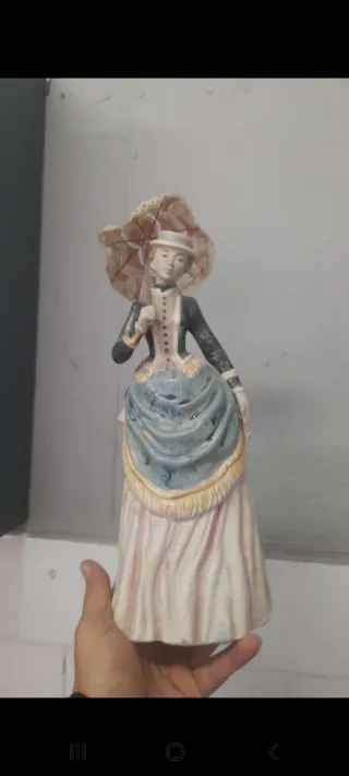 Figura de cerámica mujer con sombrilla
