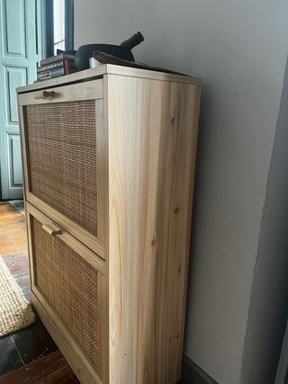 Mueble zapatero con un diseño moderno y natural. - Estructura de madera. - Frontales de ratán tejido.