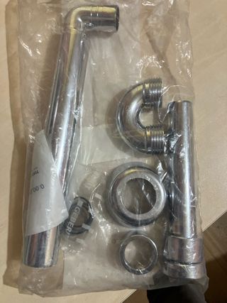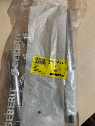Sifón de la marca Geberit en acabado cromado. fabricado en plástico duro y resistente