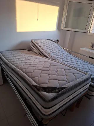 Cama articulada con estructura de tela y metal. De matrimonio con colchones individuales. Sólo tienen 2 años. Se encuentra en Montgat, urge por mudanza