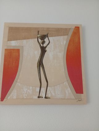 Preciosos cuadros pintados a mano, con estilo abstracto y colores beige y naranja. Son dos piezas que combinan a la perfección. - Representan figuras estilizadas. - Se encuentran en excelente estado. - Perfectos para decorar cualquier espacio.