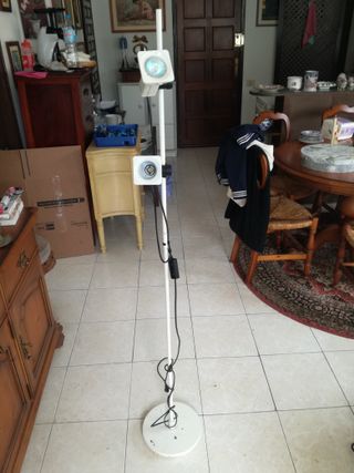 Lámpara de pie con dos focos ajustables. - Color blanco. - Base redonda. - Cable de alimentación incluido.