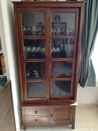 Elegante vitrina de madera maciza con un diseño clásico. Perfecta para exhibir tu vajilla o colecciones. - Estructura de madera robusta. - Puertas con paneles de cristal.