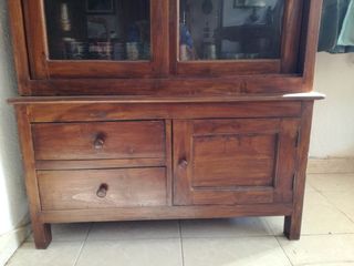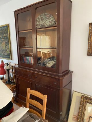 Precio negociable Vendo aparador / vitrina de madera maciza en estado impecable, prácticamente nuevo. Mueble muy robusto, elegante y de gran calidad, ideal para salón o comedor. Dispone de vitrinas con cristal, varios armarios y cajones, ofreciendo muchísima capacidad de almacenaje. La madera está perfecta, sin golpes ni arañazos. Siempre bien cuidado, en un hogar sin humedad. 📐 Medidas: • Alto: 2,03 m • Largo: 1,90 m • Fondo: 45 cm Se vende por cambio de decoración. 📍 Recogida en mano. 💪 Mueble pesado y muy estable.