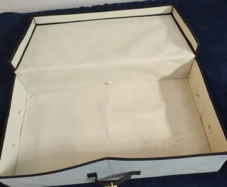 Práctica caja de tela para organizar y almacenar ropa u otros objetos. Su diseño es discreto y se adapta a cualquier espacio. - Asas laterales para facilitar su transporte. Precio negociable 😊. Tengo otros productos en mi perfil.