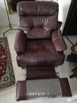 Cómodo sillón reclinable con acabado en cuero. - Diseño acolchado. - Reposapiés integrado. - Base metálica.